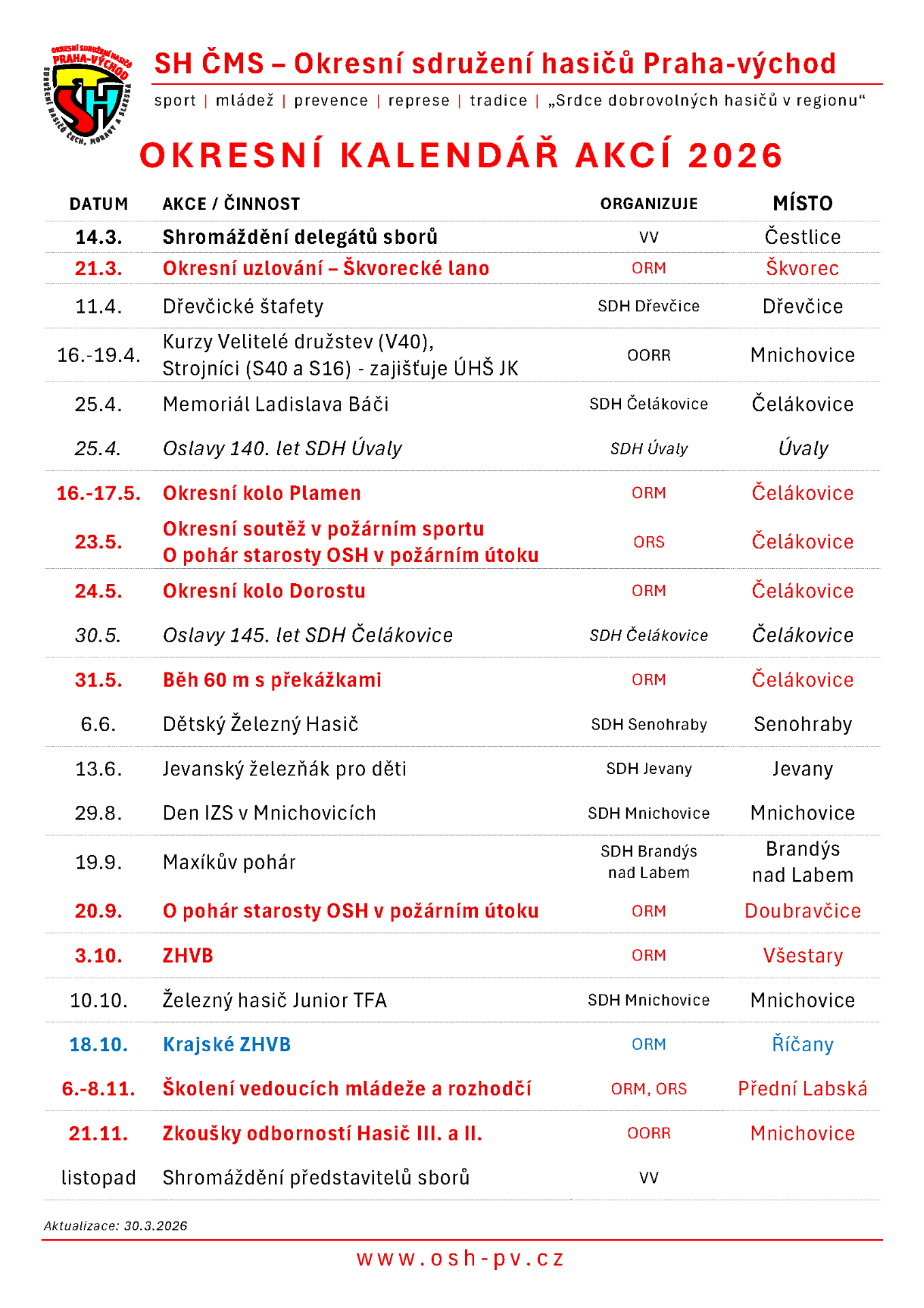 Aktualizace kalendáře dne 30.3.2026