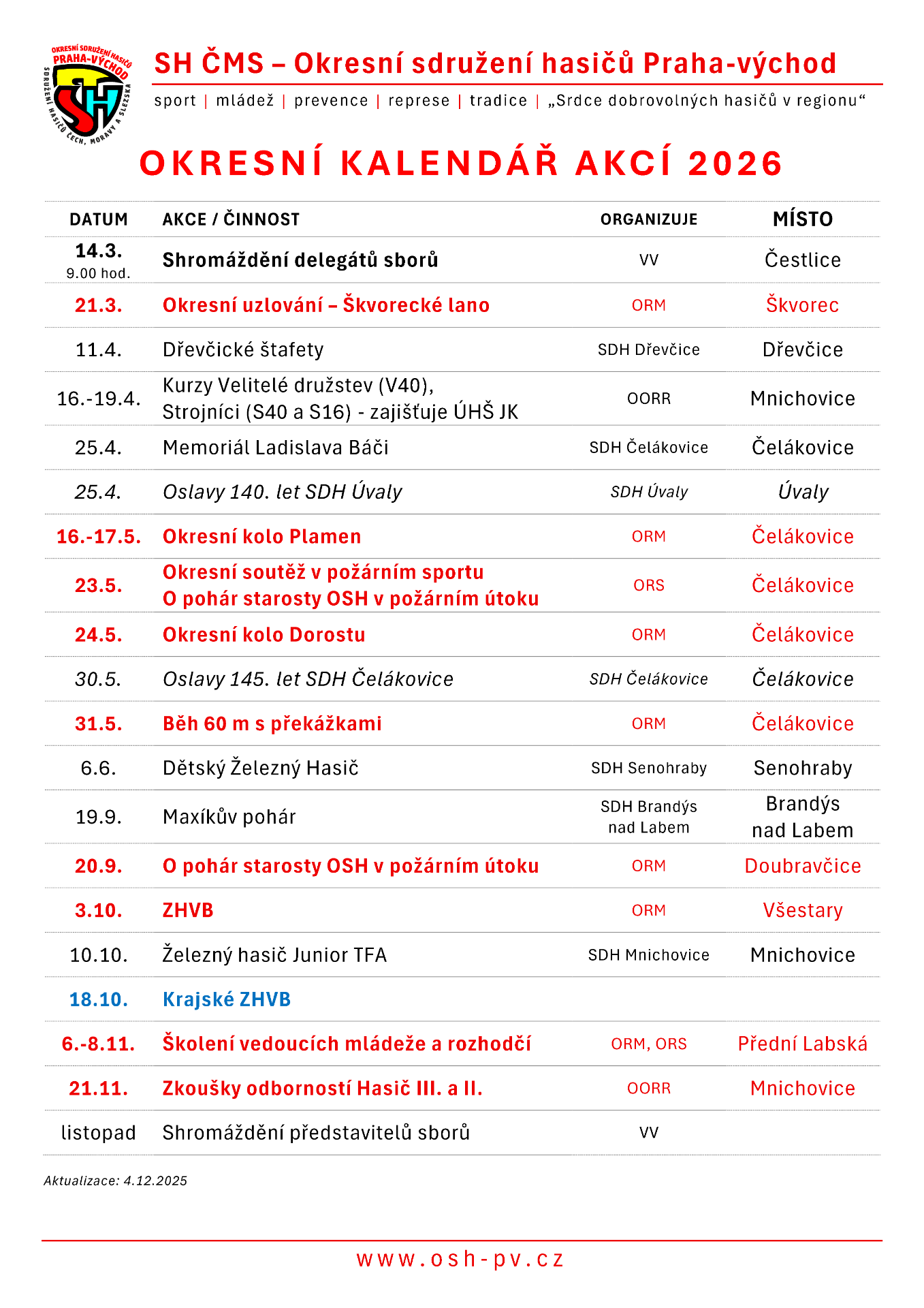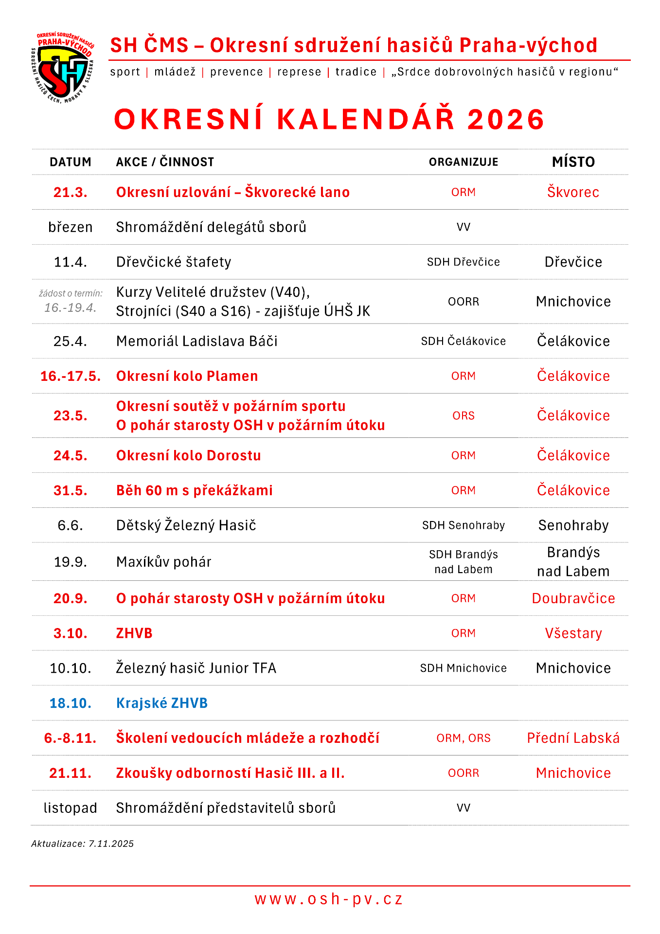 Webový kalendář akcí OSH a obsazení kanceláře OSH v Ohradní
