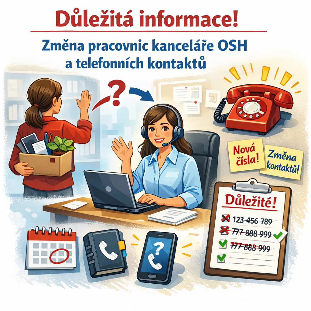 V souvislosti s personálními změnami v kanceláři OSH vám oznamujeme aktualizaci telefonních kontaktů.